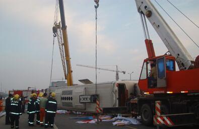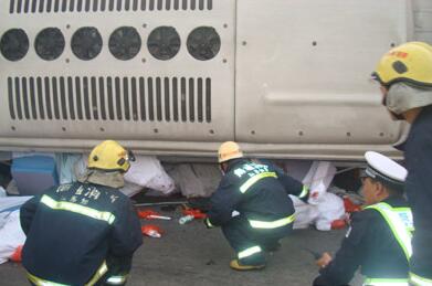 通過圖片我們可以看到,指揮員迅速組織兩組人員開展施救,一組人員利用雙利油壓千斤頂將客車頂起對被困人員進(jìn)行搜救,另一組人員利用液壓破拆工具對變形的槽罐車車頭進(jìn)行破拆,救援被困的兩名駕駛員,同時針對槽罐車泄露口進(jìn)行堵漏并對泄露的液體進(jìn)行稀釋。